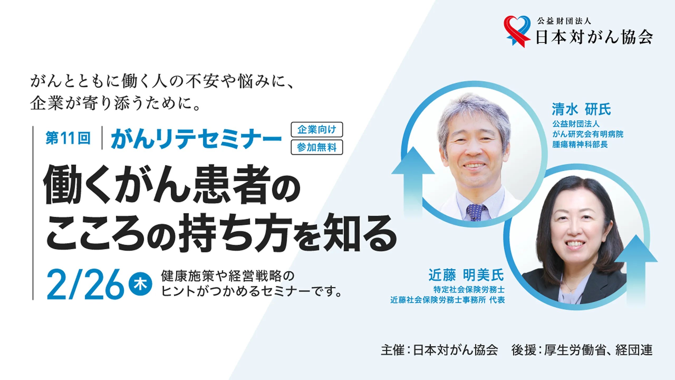 【第11回がんリテセミナー】2026年2月26日(木)、オンライン開催「働くがん患者のこころの持ち方を知る」