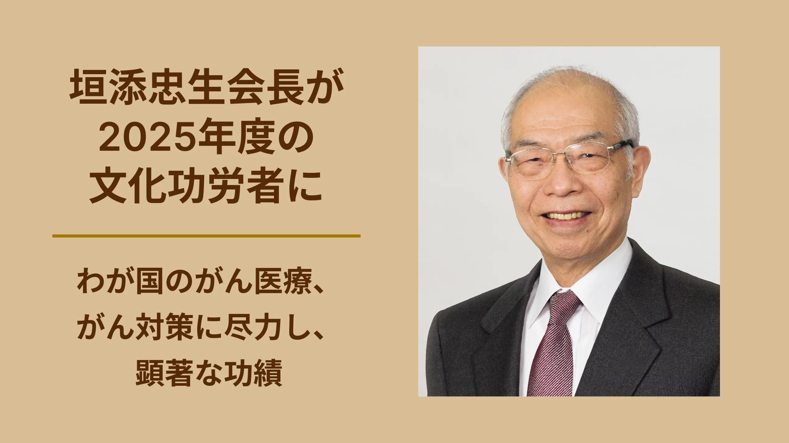 垣添忠生会長が2025年度の文化功労者に